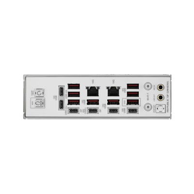 | Internal I/O Ports | Back Panel I/O Ports: 2 x USB4® (40Gbps) ports (2 x USB Type-C®) 12 x USB 10Gbps ports (8 x Type-A + 4 x USB Type-C®) 1 x Wi-Fi Module 2 x Realtek 10Gb Ethernet ports 2 x LED-illuminated audio jacks 1 x Optical S/PDIF out port 1 x BIOS FlashBack™ button 1 x Clear CMOS button Internal I/O Connectors: Fan and Cooling related 1 x 4-pin CPU Fan header 1 x 4-pin CPU OPT Fan header 2 x 4-pin Chassis Fan headers 2 x 4-pin Radiator Fan headers 2 x W_PUMP+ headers 1 x AIO Q-Connector 1 x Extra Flow Fan header Power related 1 x 24-pin Main Power connector 2 x 8-pin +12V CPU Power connector 1 x 8-pin PCIe Power connector Storage related 3 x M.2 slots (Key M) 1 x DIMM.2 slot supports 2 x M.2 slots (Key M) 4 x SATA 6Gb/s ports USB 2 x USB 20Gbps connector (supports USB Type-C®) 2 x USB 5Gbps headers support 4 additional USB 5Gbps ports 3 x USB 2.0 headers support 6 additional USB 2.0 ports Miscellaneous 1 x 6-pin ARGB Gen 2 header to support 2 x ARGB Gen 2 headers 2 x Addressable Gen 2 header 1 x Alteration PCIe mode switch 2 x BCLK button 1 x BIOS Switch 1 x FlexKey button 1 x Front Panel Audio header (F_AUDIO) 1 x LN2 Mode jumper 12 x ProbeIt Measurement Points 1 x ReTry button 1 x RSVD header 1 x Safe Boot button 1 x Start button 1 x 10-1 pin System Panel header 1 x Thermal Sensor header |