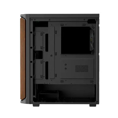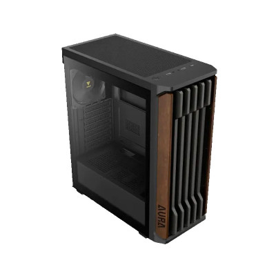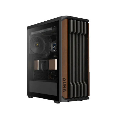 The standout feature of the AURA GC11 WOOD is its real walnut mesh front panel, giving your gaming PC a premium and sophisticated appearance. Combined with the black chassis, it creates a modern look that fits both gaming rooms and professional workspaces.