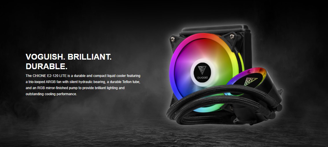 Gamdias CHIONE E2-120 Lite RGB Liquid CPU Cooler Luminous and Cool Advanced trio rings RGB brings a feast of dynamic motion into the pc chassis. Built-in effects such as rainbow wave lighting. The Gamdias CHIONE E2-120 Lite is one of the most fascinating CPU coolers designed. A Vivid Configuration Being compatible with an 5V 3 pin RGB connection, Gamdias CHIONE E2-120 Lite is able to present the detailed addressable RGB effects by harmonizing all configurations with an RGB motherboard. The best RGB effects on the cooler can be fully customized by software like Aura Sync (ASUS), Polychrome (ASRock), Mystic Light Sync (MSI), RGB Fusion(GIGABYTE), and Vivid LED DJ (BIOSTAR). Mirror Style Pump To create performance visual effects the Gamdias CHIONE E2-120 Lite applies the cutting edge style with a mirror finish on top of the pump and brings more sensuous lighting effects. This cooler is going to push your rig into next level! Born to Build With a 5V 3-pin connecter for RGB motherboard sync, a greater flexibility to connect to other RGB systems with male and female connectors. It is easy to connect additional RGB component to your setup. Impeccable Durability Gamdias CHIONE E2-120 LITE comes with the leak-free Teflon Tube and aesthetic Nylon-braided tube sleeve which makes this All-in-One system extremely low maintenance. The tube handles high pressure in extreme heat, adding to the cooling process. Hence, this makes Gamdias CHIONE E2-120 Lite a tremendously durable cooler. Outstanding Thermal Conductivity The copper base plate maximizes heat dissipation to offer superior cooling performance. Straightforward Installation As an all-in-one liquid cooler, it does not take much space for installation. The amazing design makes the installation and maintenance simple.