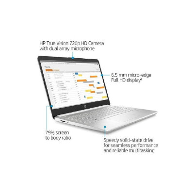 HP Laptop 14-dq2055wm – Intel Core i3 – 11th Generation – Processor 1115G4 (6M Cache, up to 4.10 GHz) – 4GB RAM – 256GB SSD – 14.0” FHD LED-backlit (250 nits) Display – Windows 10 – Color Silver – 1 Year International Warranty.| The Power to Do Things Better. Break the boundaries of performance with 11th Gen Intel® Core™ processors. Stay connected to what matters most with long-lasting battery life and a thin and portable, micro-edge bezel design. Built to keep you productive and entertained from anywhere, the HP 14 inch Laptop PC features reliable performance and an expansive display - letting you stream, surf and speed through tasks.