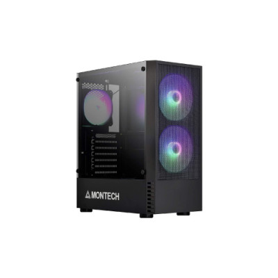 Montech X2 MESH is Mid-Tower ATX Gaming Case that comes with a Fully clear tempered glass side panel. This Gaming case has three pre-installed rainbows LED fans, 2 x 140mm fans at the front, and 1 x 120mm fan at the rear. This Gaming case featured Expansion Slots: 7, Dust Filters: Top, Bottom, Power Supply Support: Bottom mount, ATX. It has USB2.0 x 2, USB3.0 x 1, Audio x 1, Mic x 1 I/O ports. Montech X2 MESH Gaming Casing has a Full transparent tempered glass side panel. The fine mesh front panel along with two strong 140mm fans provides massive air intake.