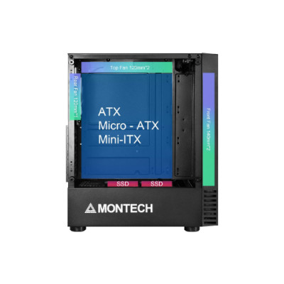 This X2 MESH case is compatible with ATX, Micro ATX, Mini ITX motherboards. The new Montech X2 MESH Black Gaming Case has no warranty.