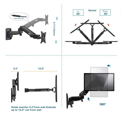 The North Bayou F150 is a versatile monitor desk mount designed to accommodate displays ranging from 14 to 27 inches. This sturdy stand features a gas spring mechanism that allows for smooth and effortless height, tilt, swivel, and rotation adjustments, ensuring optimal viewing comfort. The F150's full motion capabilities provide flexibility to position your monitor precisely according to your needs. Compatible with both VESA-compatible and non-VESA monitors, the F80 offers broad compatibility. Constructed from durable materials, the F80 ensures stability and longevity. The included cable management features help keep your workspace tidy.