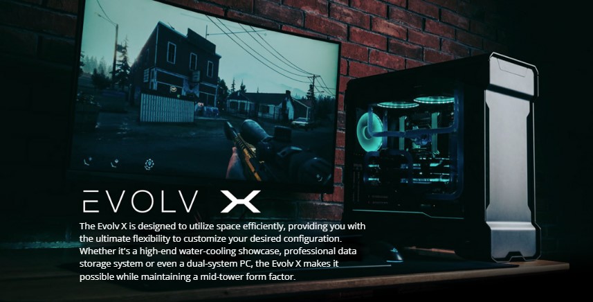 The Phanteks Enthoo Evolv X is designed to utilize space efficiently, providing you with the ultimate flexibility to customize your desired configuration. Whether its a high-end water-cooling showcase, professional data storage system or even a dual-system PC, the Phanteks Enthoo Evolv X makes it possible while maintaining a mid-tower form factor.