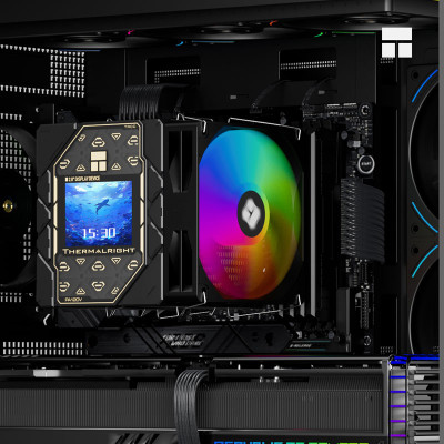 What sets the Thermalright Peerless Assassin 120 Vision ARGB CPU Air Cooler apart is its stunning visual design. The integrated ARGB lighting system, powered by a 3-pin 5V connector, allows for vibrant customization and synchronization with your motherboard’s lighting ecosystem. Additionally, the built-in 2.8-inch LCD display with a resolution of 320×240 adds a unique touch to your setup. It connects via a 9-pin USB 2.0 port on the motherboard, enabling real-time system monitoring or custom visuals, enhancing both aesthetics and functionality.