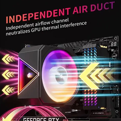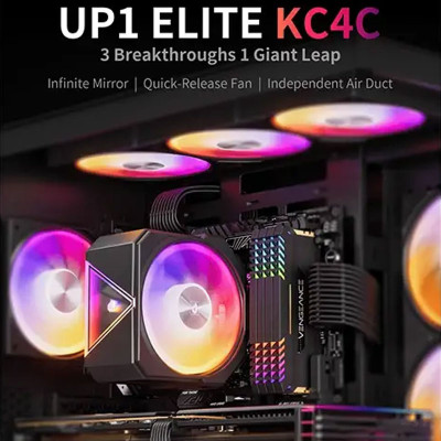 The upHere UP1 Elite KC4C ARGB CPU Air Cooler - Black offers efficient heat dissipation, low-noise performance, and vibrant addressable RGB lighting. With wide socket compatibility and a 4-heatpipe design, it keeps your processor cool while enhancing the overall look of your PC build.