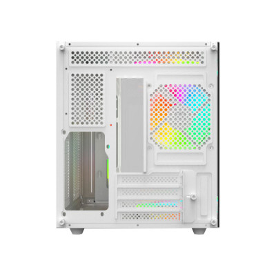 The sleek full-white finish contributes to a contemporary and stylish aesthetic, making the casing a suitable fit for a variety of gaming setups. The dual-chamber modular structure is a notable feature, facilitating efficient cable management and optimizing airflow. This not only enhances the overall performance of the system but also contributes to a clean and organized interior, which is particularly important for those who appreciate a tidy build.