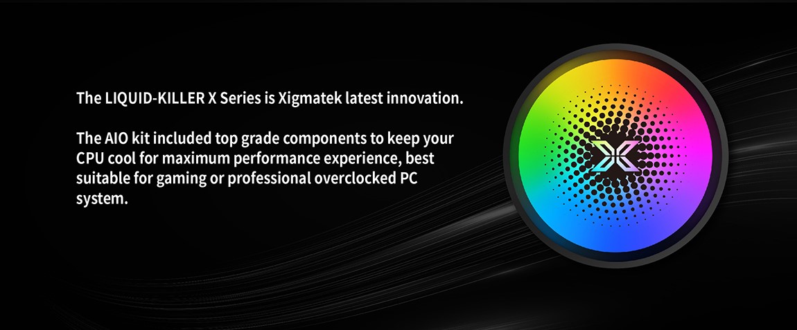 Xigmatek LIQUID-KILLER X 240 ARGB CPU Cooler comes with a new X logo ARGB Pump Head and 2x120mm ARGB Fan. It comes with a 380mm length with O.D. Ø12mm, black sleeved cable, super strong and stylish outlook, and top-grade pure copper cold plate design that provides effective and stable heat dissipation. It features a ceramic axle bearing that guarantees less resistance and super long service life, special design 8-pole motor delivers a high flow rate and maintains ultra-quiet operation. The Xigmatek LIQUID-KILLER X 240 comes with an ARGB Controller box included with RF wireless remote controller. It can be used to adjust the fan speed and ARGB lighting. It is compatible with Intel LGA 20xx/1700/1200/115x Socket and AMD AM4/AM3+/AM3 Socket.